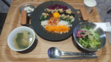 ヤンニョムチキンプレート 960円(税込)。メインのヤンニョムチキンの他、ナムル数種やスープがついています。ご飯は白米と15穀米から選べました。まぁ味は悪くないし価格も安めなので、本厚木に用事があるときにはまた行くかもしれません。