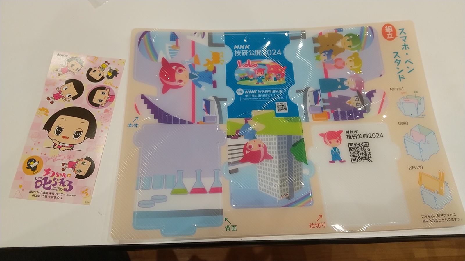 『ラボちゃん工作体験』。シートから部品を切り出し、スマホスタンドを組み立てるというもの。刃物も接着剤も要らない、お子様歓迎な仕様です。