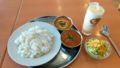 エグゼクティブターリーランチ 1,680円。カレー2種(選べる、ただし曜日によって選べるカレーが異なる)、タンドール料理盛り合わせ、ナン、ライス、サラダ、ドリンク(選べる、写真はラッシー)。タンドール料理が3品もつく(タンドリーチキン、チキンティッカ、シークカバブ)など値段の割に盛りだくさんでボリュームたっぷりです。なかなかコスパがいいですね。
