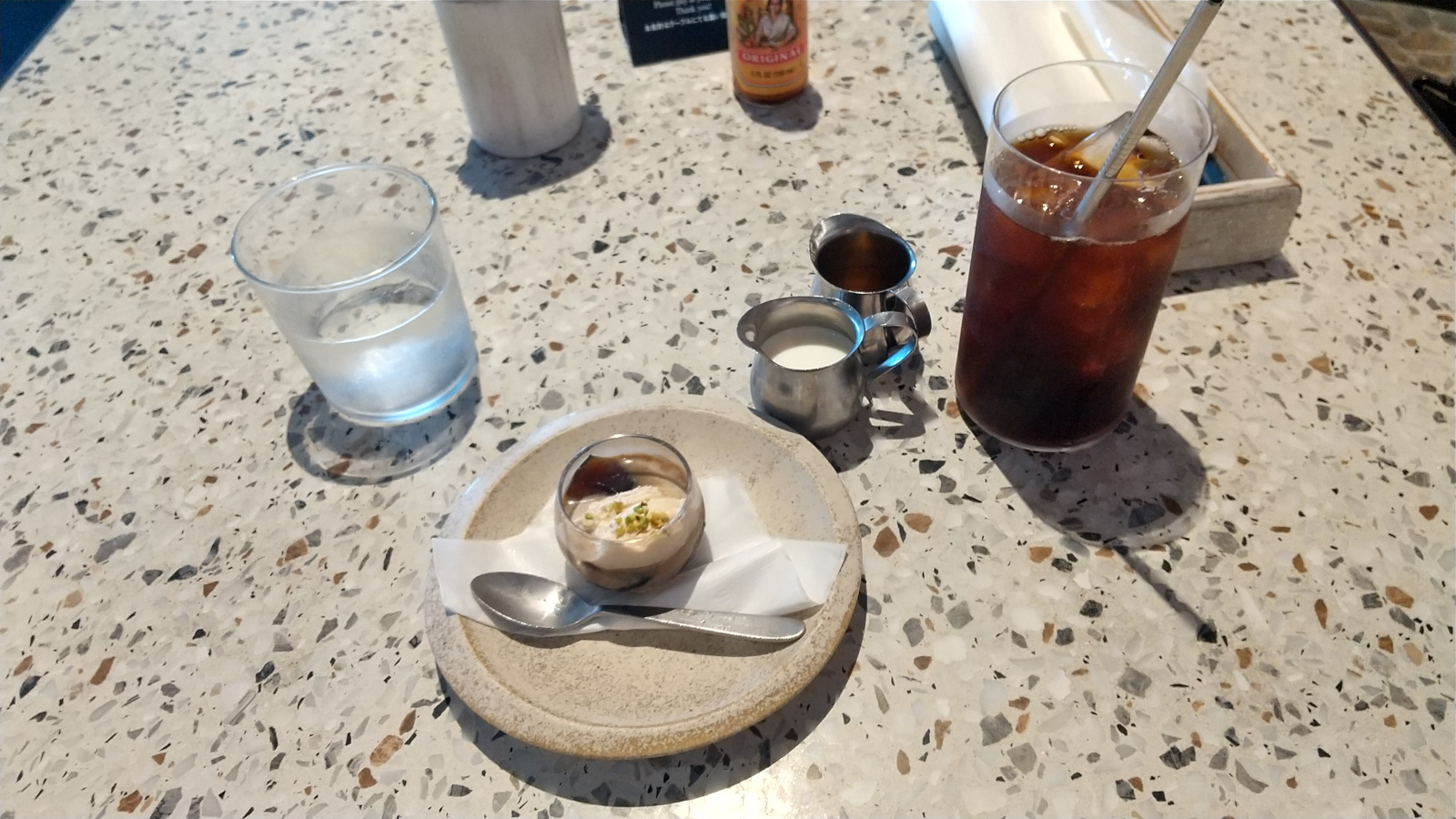 ランチコースはデザート付きです。ドリンクは別(+200円)ですが、アイスコーヒーを頼んで味が被ってしまったじゃないか…。デザートがコーヒーゼリーなら注文するときに教えてくれや…。
