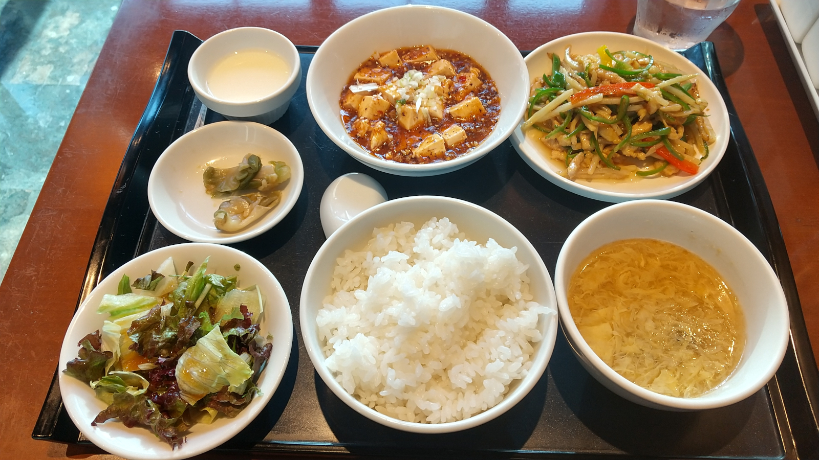 選べるW定食 1,500円。手頃な値段で好きな料理2品、スープ、サラダ、ご飯、ザーサイ、杏仁豆腐がついています。メイン料理には麻婆豆腐と青椒肉絲を選びました(ド定番w)。分量の割にずいぶん安いので味はどうかな…と一瞬心配したのですが…麻婆豆腐は辛すぎず、物足りないと言うこともなくなかなか。青椒肉絲も野菜しゃきしゃきでけっこう美味しいです。これは非常に両コスパなのでは…?駅ナカで食べ終わったらすぐ改札を入れるという好立地。今回のように新幹線を待ちながら食事、というのには最適な店でした。