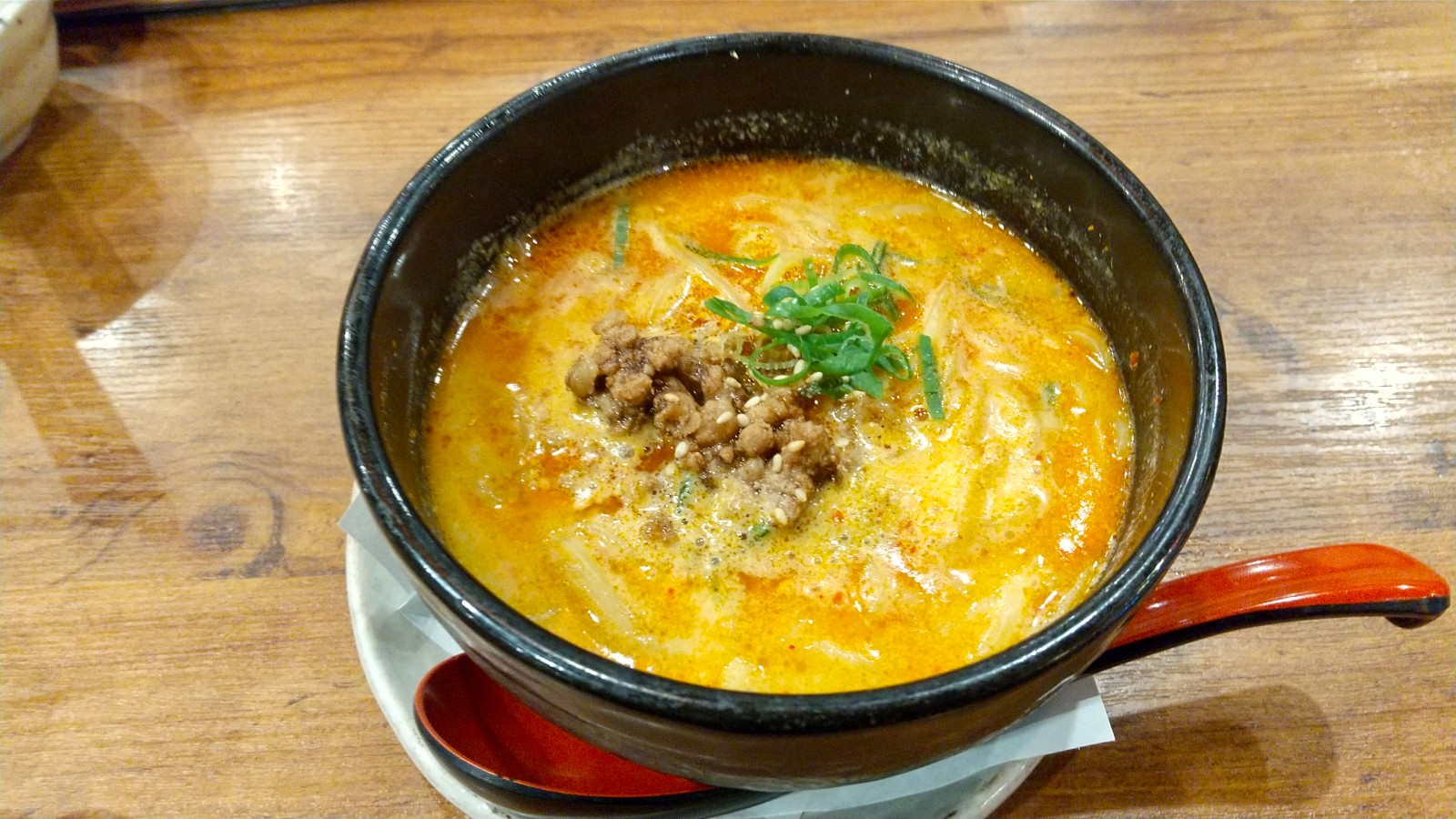 担々麺 548円。ここまでいまいち腹持ちが悪そうな感じだったので、最後はこれで締めました。まぁ値段もこれですし通常のラーメン1杯よりはだいぶ量少なめですが、今回はこれでちょうど良かったです。