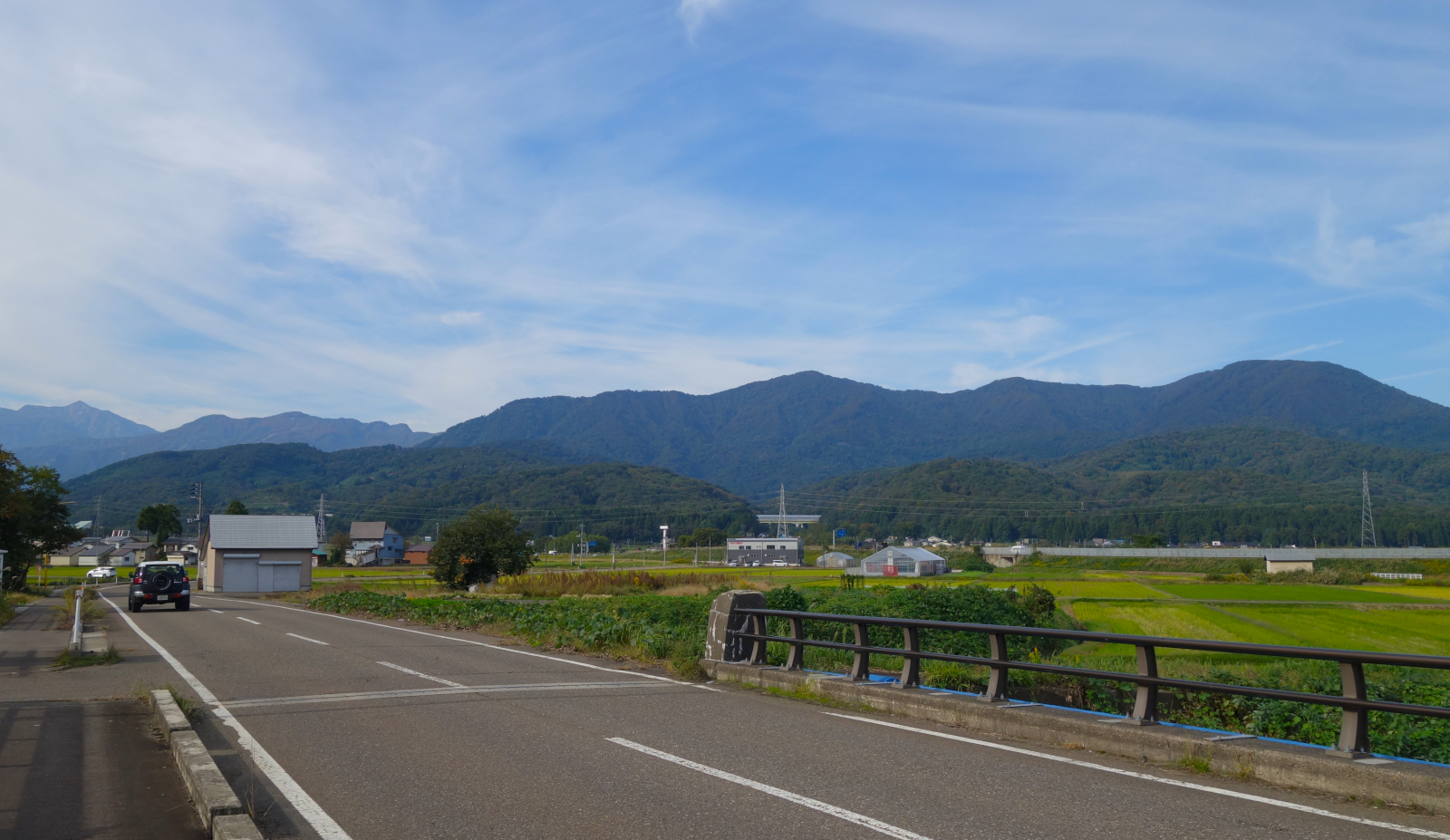 目指す鮫ヶ尾城は写真の奥にある山の上です。駅前からバスもなくタクシーも捕まえられそうにないので歩くしかありません。幸い、登城口となる斐太歴史の里のすぐ近くまで平地が続き、ほとんど上り下りがありません。それでも40分ほどかかりましたが…。