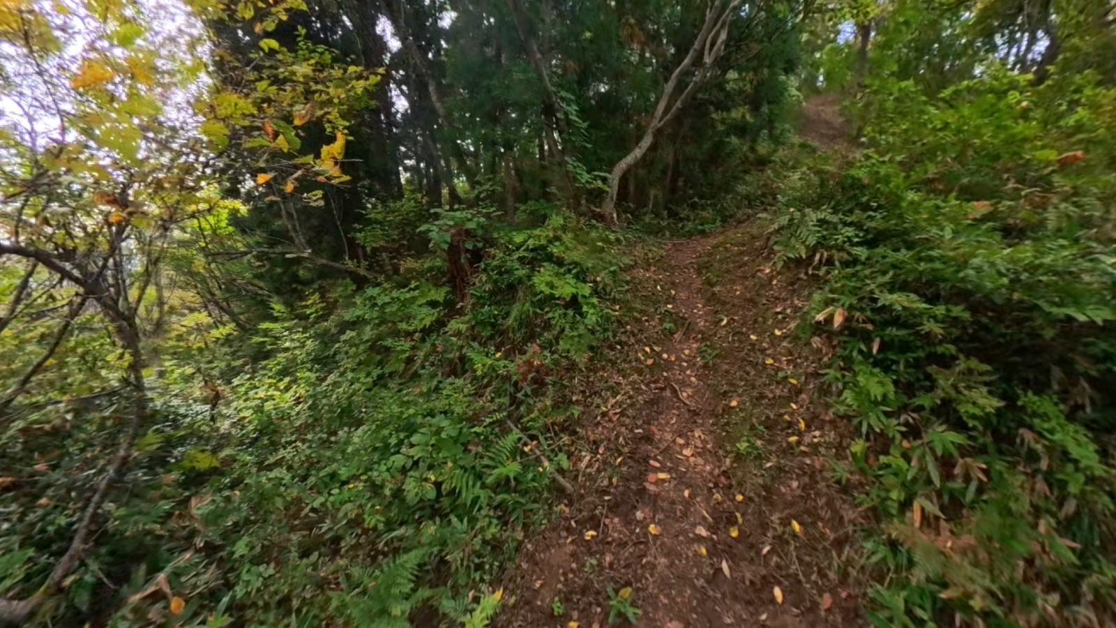 東登城路は南登城路よりは傾斜がゆるやかなようですが、それでも完全な山道なのでそれなりの体力は必要です。特に履き物は山道を歩きやすいものを用意することが必須です。また熊目撃情報があるため、最低でも熊鈴、できれば熊スプレーを用意の上で挑んだ方が良いと思います。
