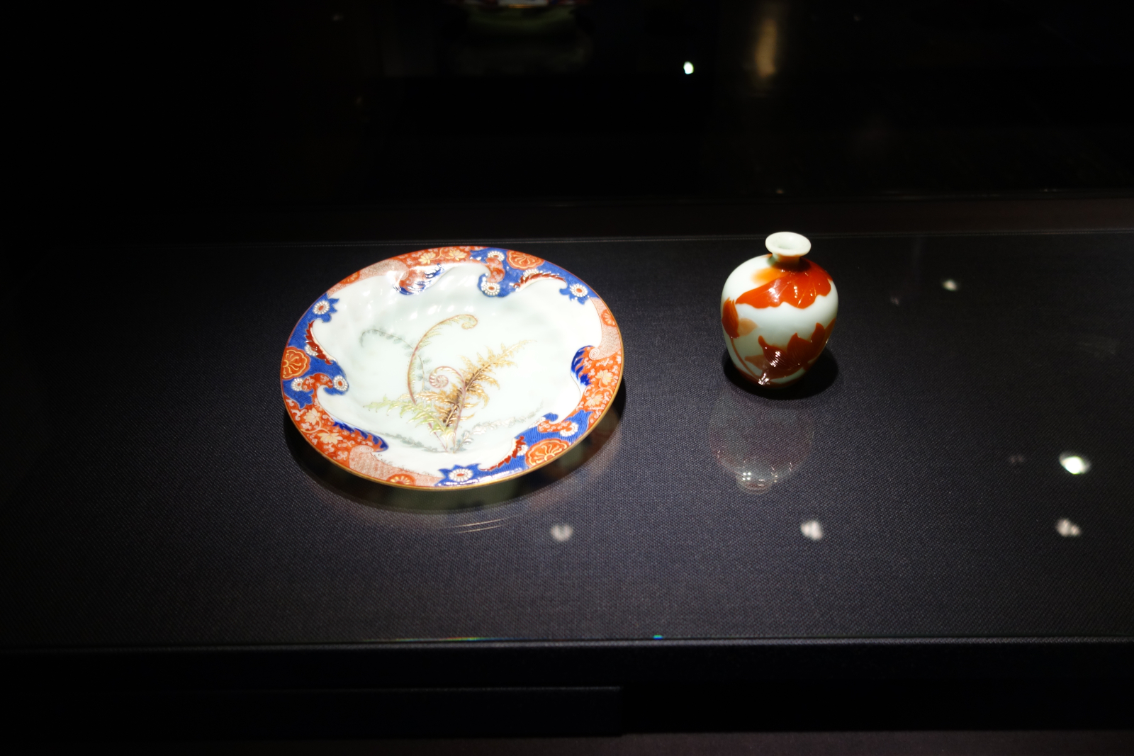 エミール・ガレの『羊歯文伊万里風縁飾皿』。伊万里焼風の作品です。伊万里焼はヨーロッパで人気があったそうで、ヨーロッパの芸術家が伊万里など日本の工芸品を参考にすることも多かったようです。伊万里焼といえばもちろん陶器なのですが、これは陶器に見えて実はガラス製です。ガレはこのような陶磁器を模したガラス器を『磁器ガラス』と呼んでいたそうです。