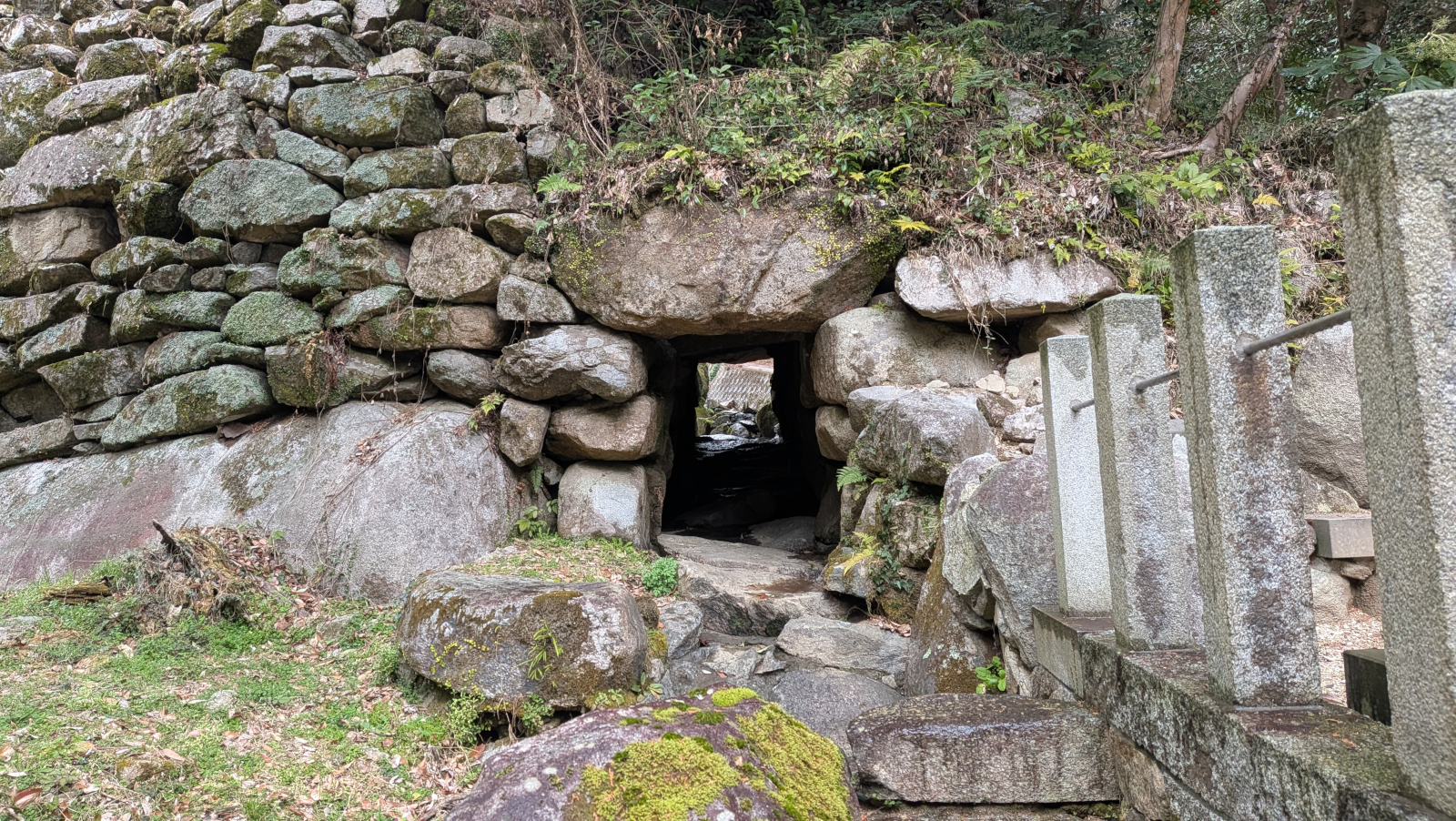 よく観ると開口部に石積みが残っています。